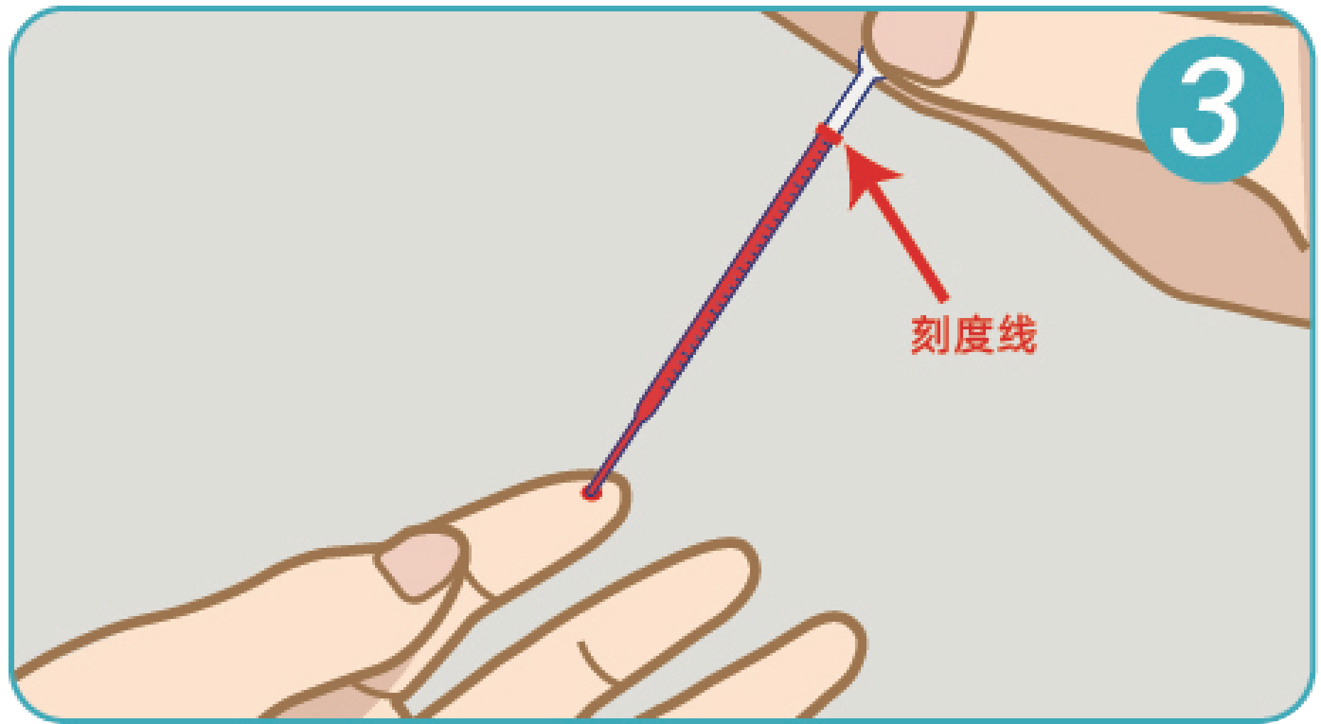 3.将采血管口靠近血液,采血管自动虹吸,吸满至刻度线