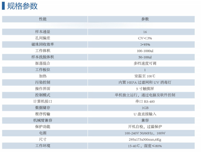 创新:经过独特设计的磁吸附装置,最低可兼容50ul的洗脱液。