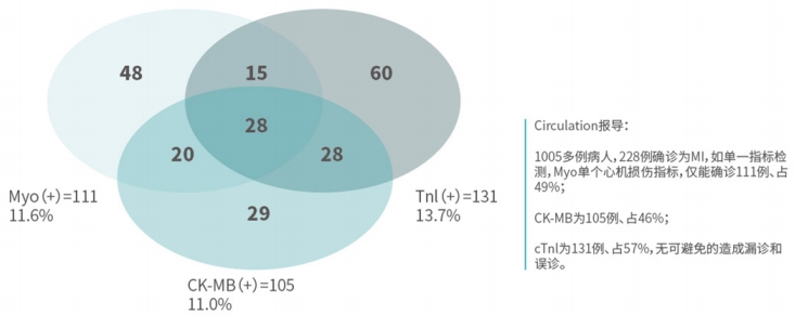 MPO、H-FABP 与 cTnI 联合检测,临床上可用于早期判断不明原因或心电图正常的