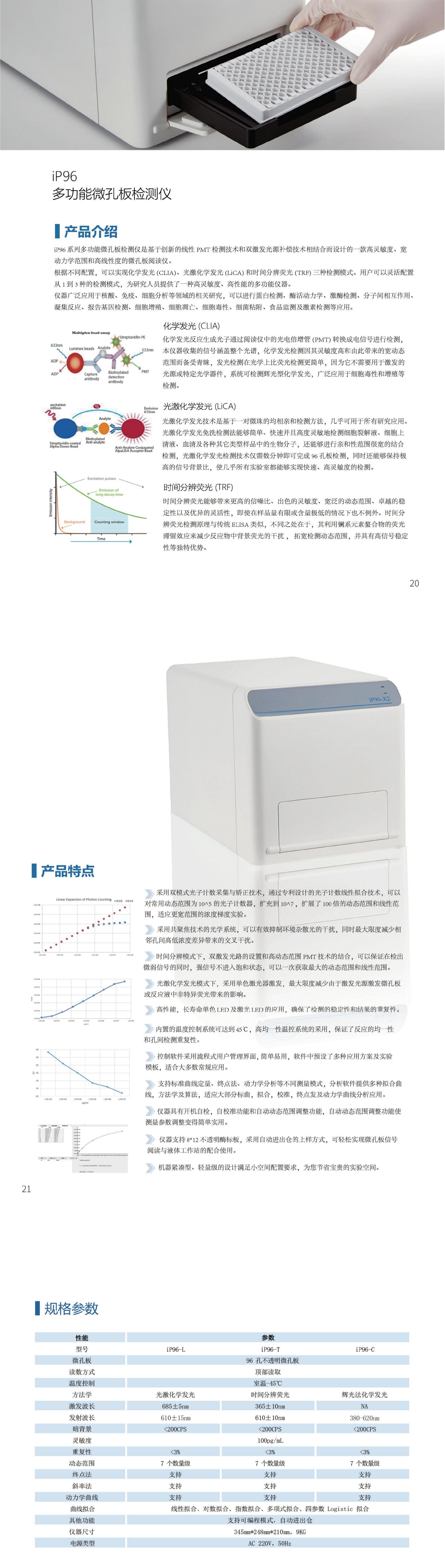 iP96系 列多功能微孔板检测仪是基于创新的线性PMT检测技术和双激发光源补偿技术相结合而设计的一款高灵敏度、 宽