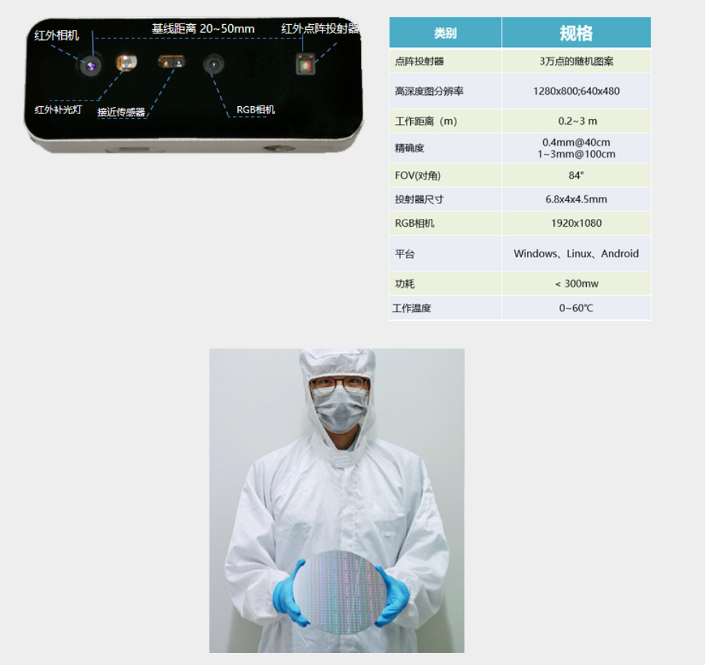 · 高分辨率:30K点阵投影仪,100万以上3D点云。