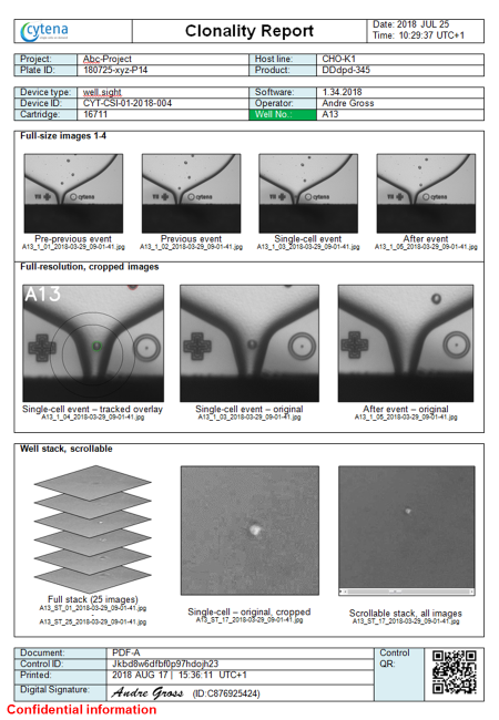 UP.SIGHT 可对每个单细胞的喷嘴图像、3D全孔成像以及克隆形成追踪图像生成特定的全面的强有力的克隆证明报告。全能的UP.SIGHT必然会成为加速提升细胞系开发工作的重磅利器!