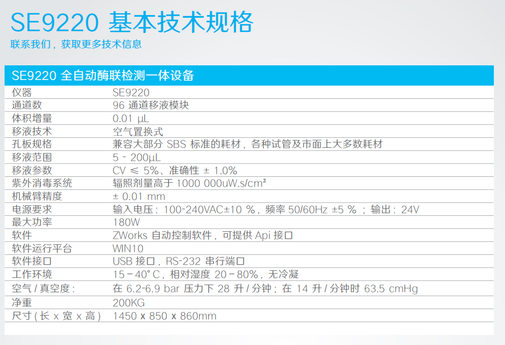 专为酶联免疫检测实验而设计的设备,配备夹爪搬 运、振荡混匀、自动洗板及酶标检测等功能模块, 也可进行 PCR 体系的构建、移液分装等工作; 搭载可更换的 96 通道移液模块,在保证设备稳定性 的同时,实现高通量移液及多功能操作。
