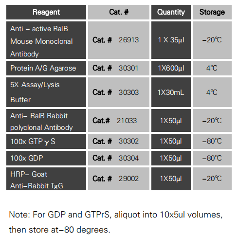 注意:在细胞体内环境条件下大约有 10% 的 RalB 被激活,而在体外用 GTPγS 处理大约有90%的 RalB 被激活。