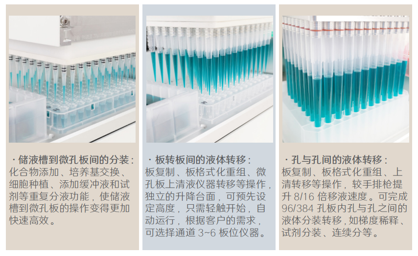 ·多通道的移液工作站,三个核心可自由更换,个性化的配置满足您的实验需求;