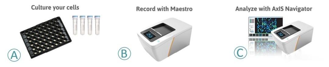 只有电生理专家才会使用Maestro MEA系统?不存在的!只要把细胞培养在MEA板上,然后把板放入Maestro MEA仪器检测仓内,即可记录心肌细胞电生理数据。Axion提供的一系列软件会帮您完成剩下的数据分析步骤,甚至连可直接用于文献发表的图表都搞定了。您也可以!