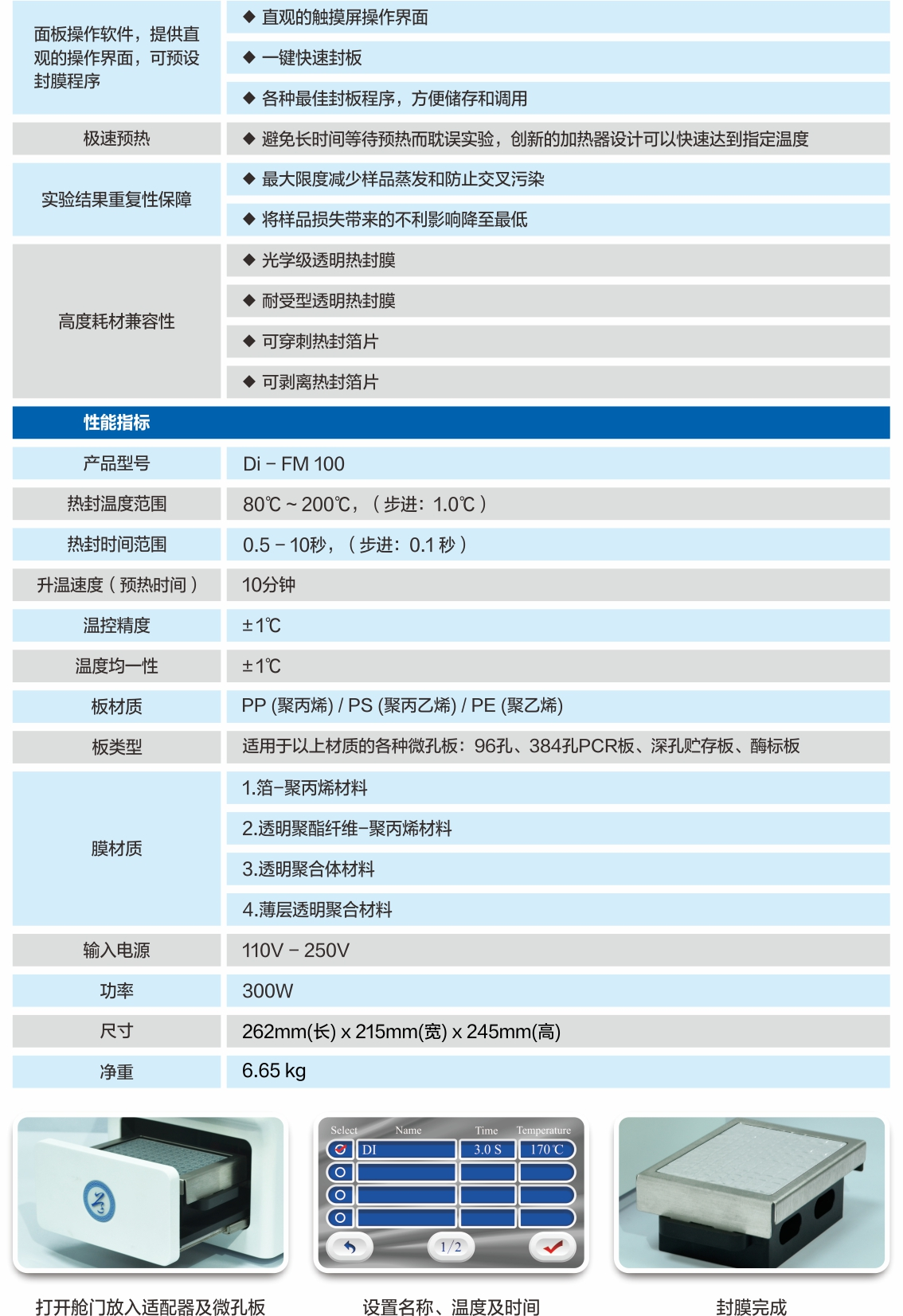 ♦ 快速加热,实时显示封板温度,自动检测微孔板高度;
