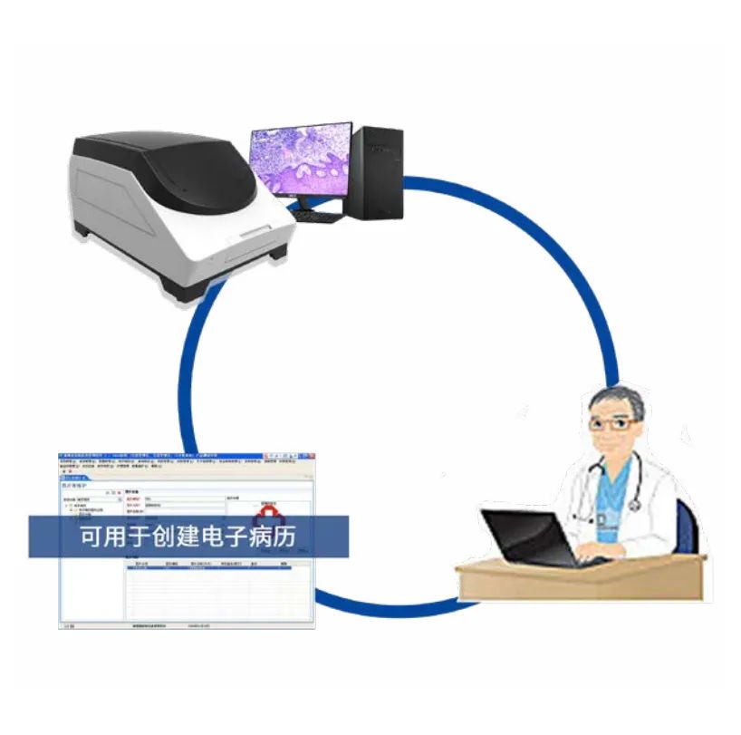 图像存储与导入功能以对实验数据进行长期存档;图像压缩格式支持 : 支持 JPEG、TIFF、BMP 等格式;浏览不同扫描倍数下的全景信息数字化玻片,可进行注释、标记;可形成标准教学示范图集,用于教学;