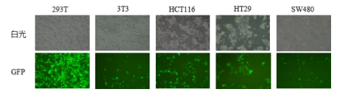 图:所示细胞按照本说明书进行GFP质粒转染,质粒转染16小时后荧光显微镜下拍照记录转染效果