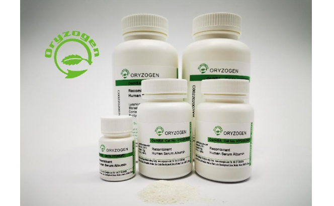 人血清白蛋白(HSA)作为人血浆中含量最丰富的蛋白,是激素、脂类等物质的转运载体,其主要生理功能是调节血浆pH值和维持血浆渗透压。OsrHSA是一种来源于转基因水稻的重组人血清白蛋白,不含有动物源成分,能为无血清培养基提供更安全的选择。与胎牛血清(FBS)、血浆来源白蛋白(pHSA)和牛血清白蛋白(BSA)相比,OsrHSA具有更高的纯度,更好的批次稳定性。同时,OsrHSA也广泛地在生物医药生产中作赋形剂、稳定剂和包埋剂。