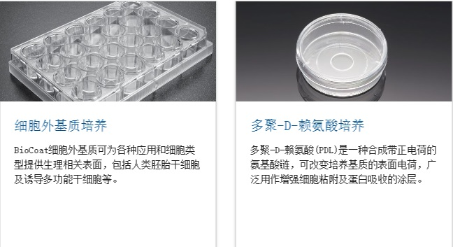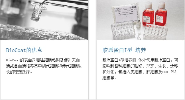 BioCoat™表面是在无血清或含血清培养基中强化细胞贴壁及各种原代细胞和传代细胞生长的理想选择。我们在薄膜涂层技术方法具有丰富的经验,可提供高度一致且具生物功能的预涂层,并采用严格的质量控制体系,以满足您的应用需求。