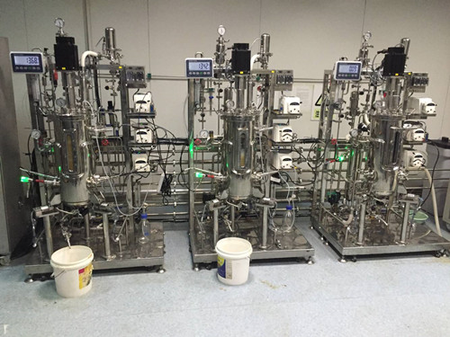 罐体:主体材质为全不锈钢316L罐体,罐内无死角;带发酵罐专用取样、放料阀,移种管道。采用大视角罐内液位观察视镜,12V安全视灯,带有温度、PH、 DO、消泡、液位接口、接种口、补料口 、及多个备用口,所有焊缝坚固整齐美观。