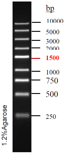 1500bp为加亮带,浓度为其他条带的2.5倍;