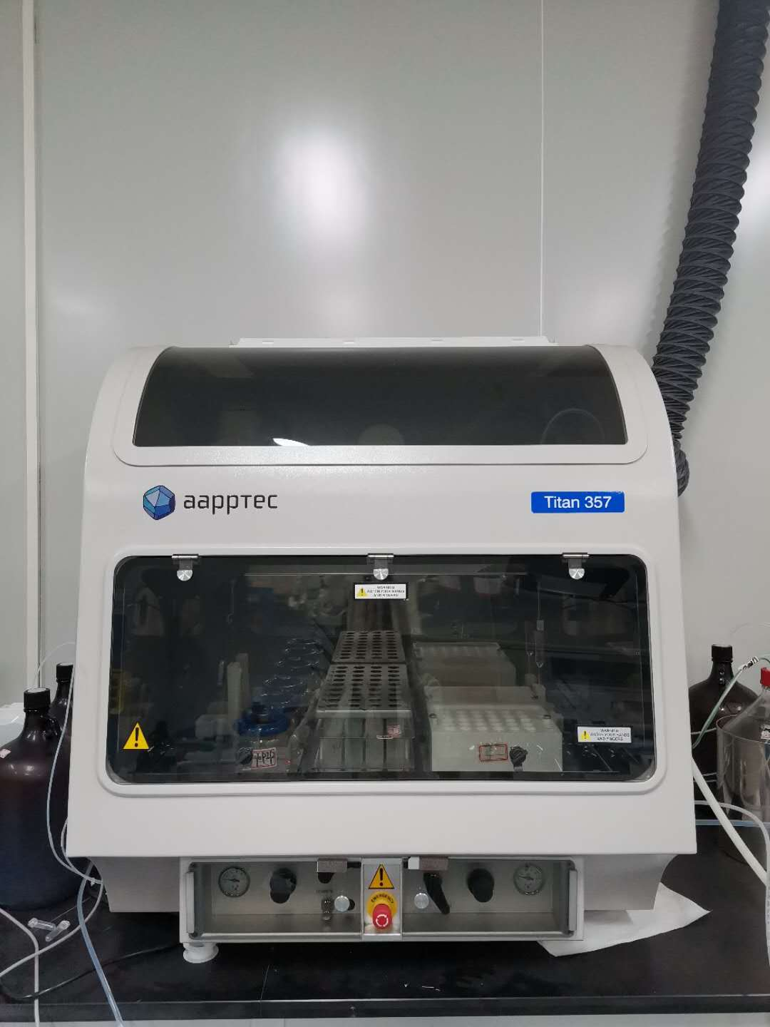 Titan 357全自动多肽合成仪是一台自动Split-and-Combine化合物,采用了Furka, Lam, Hruby和Houghton开发的Split-and-Combine(混合-分离)方案,用于自动生产化合物,包括成千上万的化合物。设计用户自定义库非常简单,仅需要操作灵活的,易用型的软件即可。用户可以创建完全的随机多肽库或者在序列内仅有很少随机位置的多肽库。混合物的数量在每一个Split-and-Combine(混合-分离)步骤中能达到的范围从2到36。
