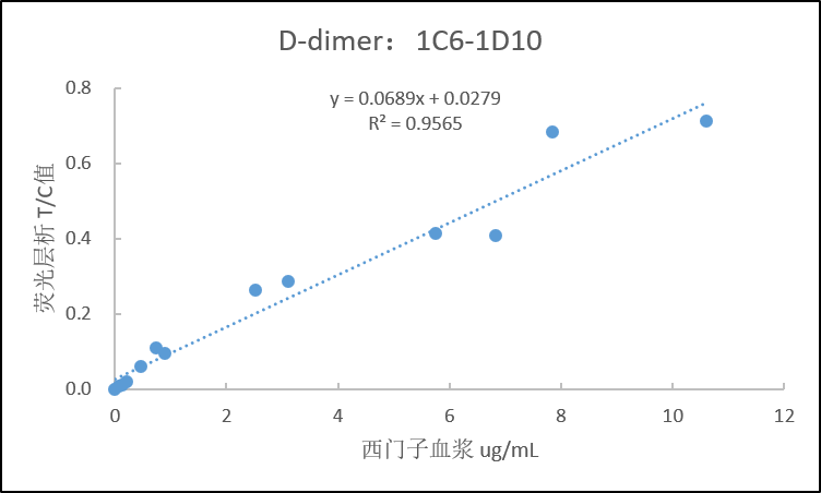 图二:探生DD:1C6-1D10配对抗体在荧光层析平台测试西门子样本相关性良好