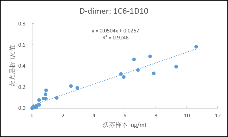 图三:探生DD:1C6-1D10配对抗体在荧光层析平台测试沃芬样本相关性良好