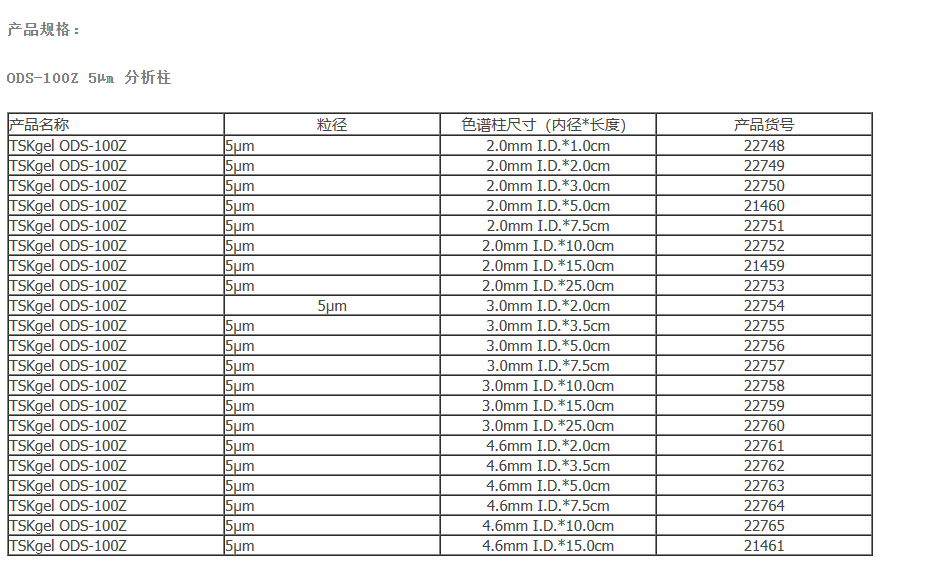 TSKgel ODS-100Z色谱柱含有高密度单交联C18键合相,对分子量较小的化合物的分离达到zui大的保留和更好的分离选择性。*的封端可以防止样品组分与残余硅醇基发生二次相互作用。