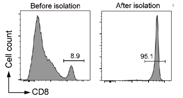 结论:分选前后的CD8+细胞纯度分别为8.9%和95.1% 。