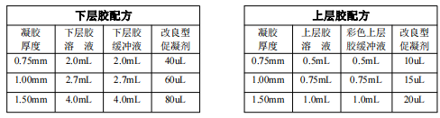 1. 取等体积下层胶溶液和下层胶缓冲液冲液,各 2.0/2.7/4.0mL,轻轻混匀。
