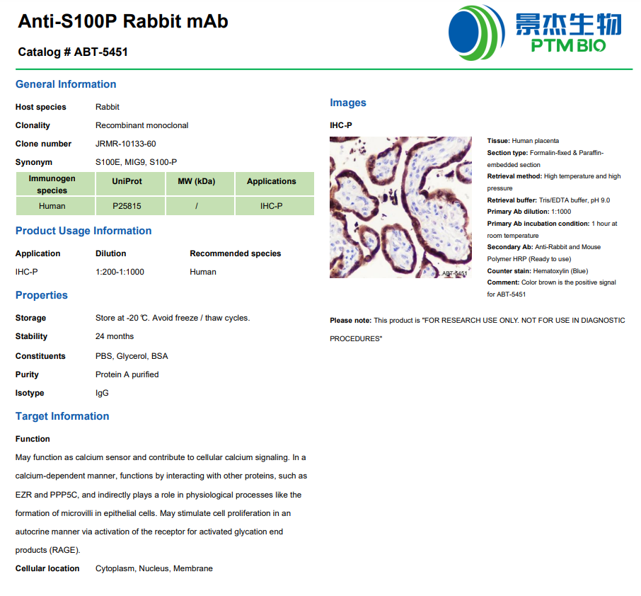 Anti-S100P Rabbit mAb