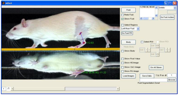 动物步态分析系统的软件可以处理视频数据。依据每个脚步的尺寸、位置、移步动态和压力,计算很多参数,用于定性和定量分析脚步和步态。