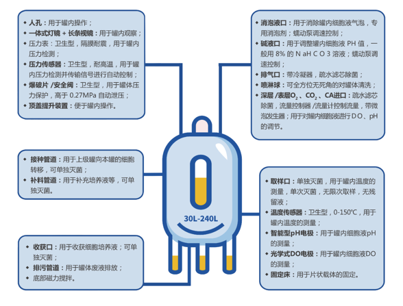 · 可选配补料、接种、收货、进气、排气等管路单独全自动灭菌