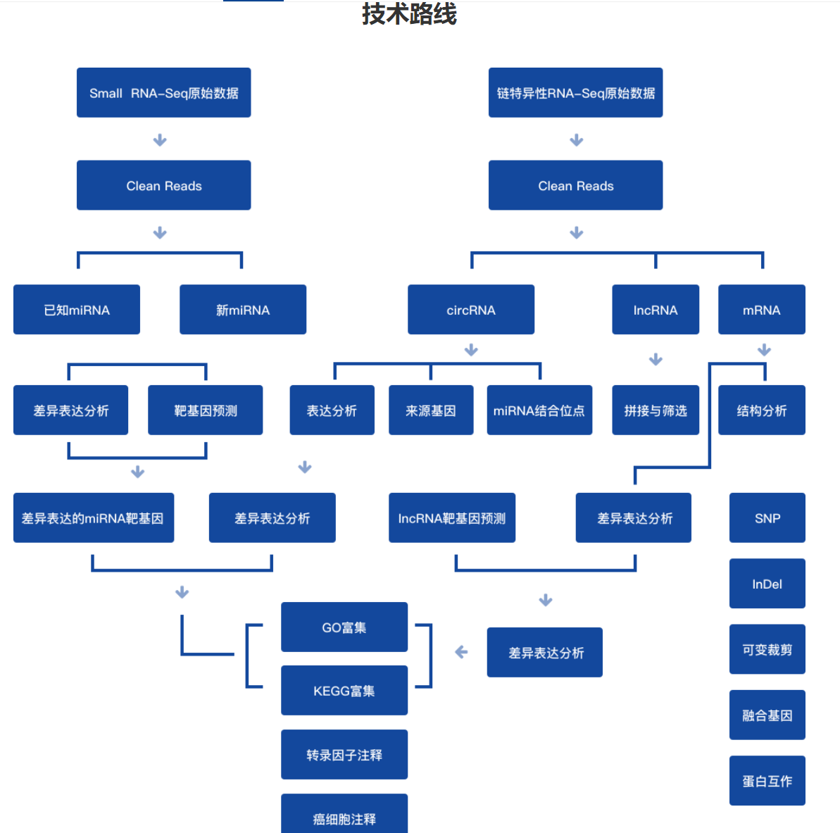 通过构建两种文库(small RNA文库和去rRNA的链特异性文库),对四种RNA(miRNA,lncRNA,mRNA,circRNA)的表达及调控关系进行分析。