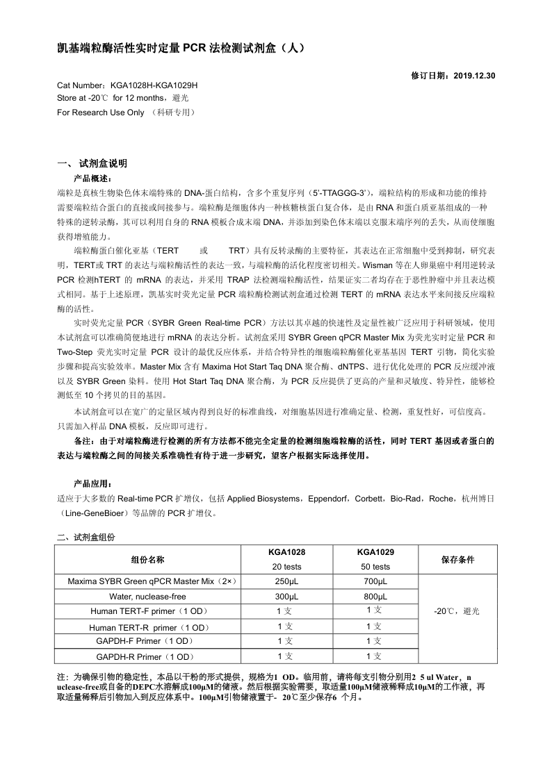 端粒酶活性荧光实时定量PCR法检测试剂盒(人)